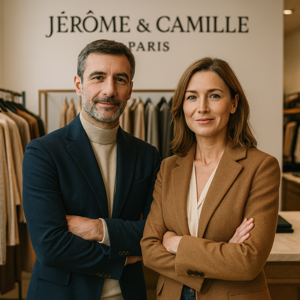 Après avoir travaillé pendant des années dans un atelier parisien (Jérôme) et chez un grand détaillant de luxe (Camille), ils se sont rencontrés, sont devenus un couple et ont ouvert leur propre boutique, qui existe depuis maintenant 10 ans et compte des centaines de clients satisfaits. Leur promesse : des pièces de qualité, une approche personnalisée et des collections qui anticipent les nouvelles tendances sans perdre leur style intemporel. Ils écoutent, adaptent et s'assurent que chaque client repart confiant et satisfait.